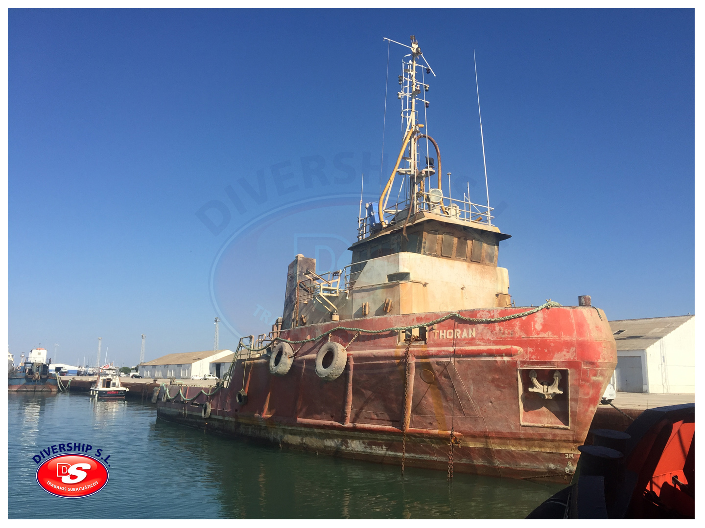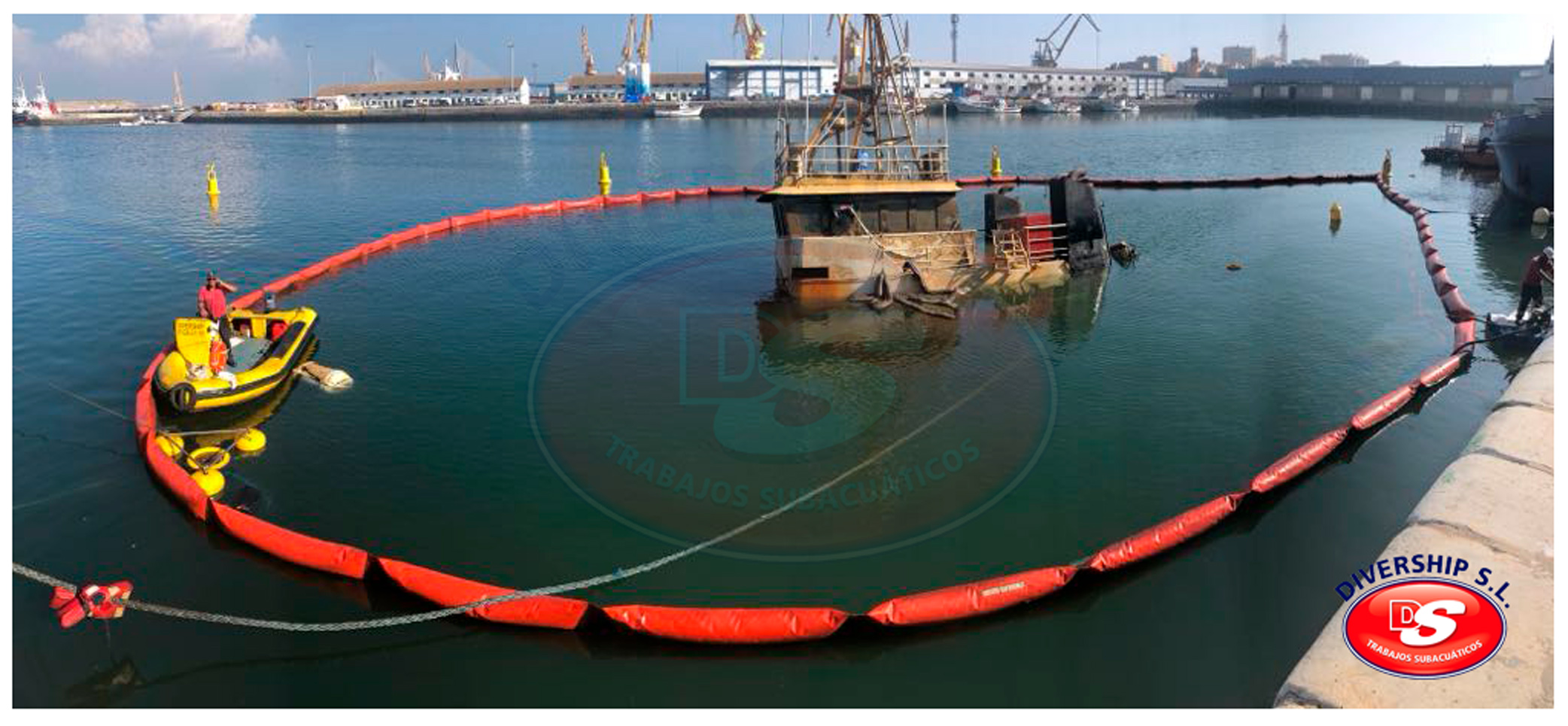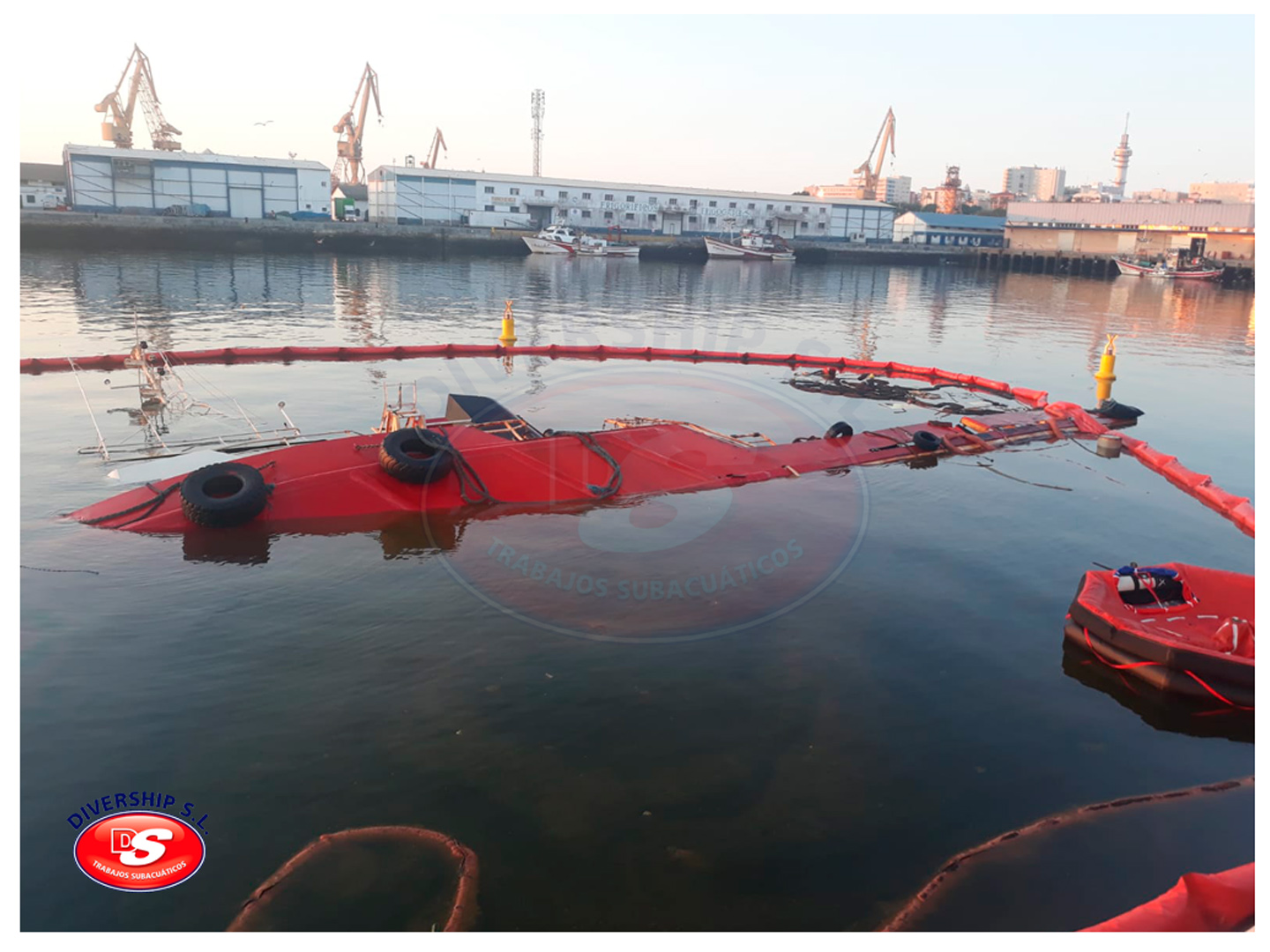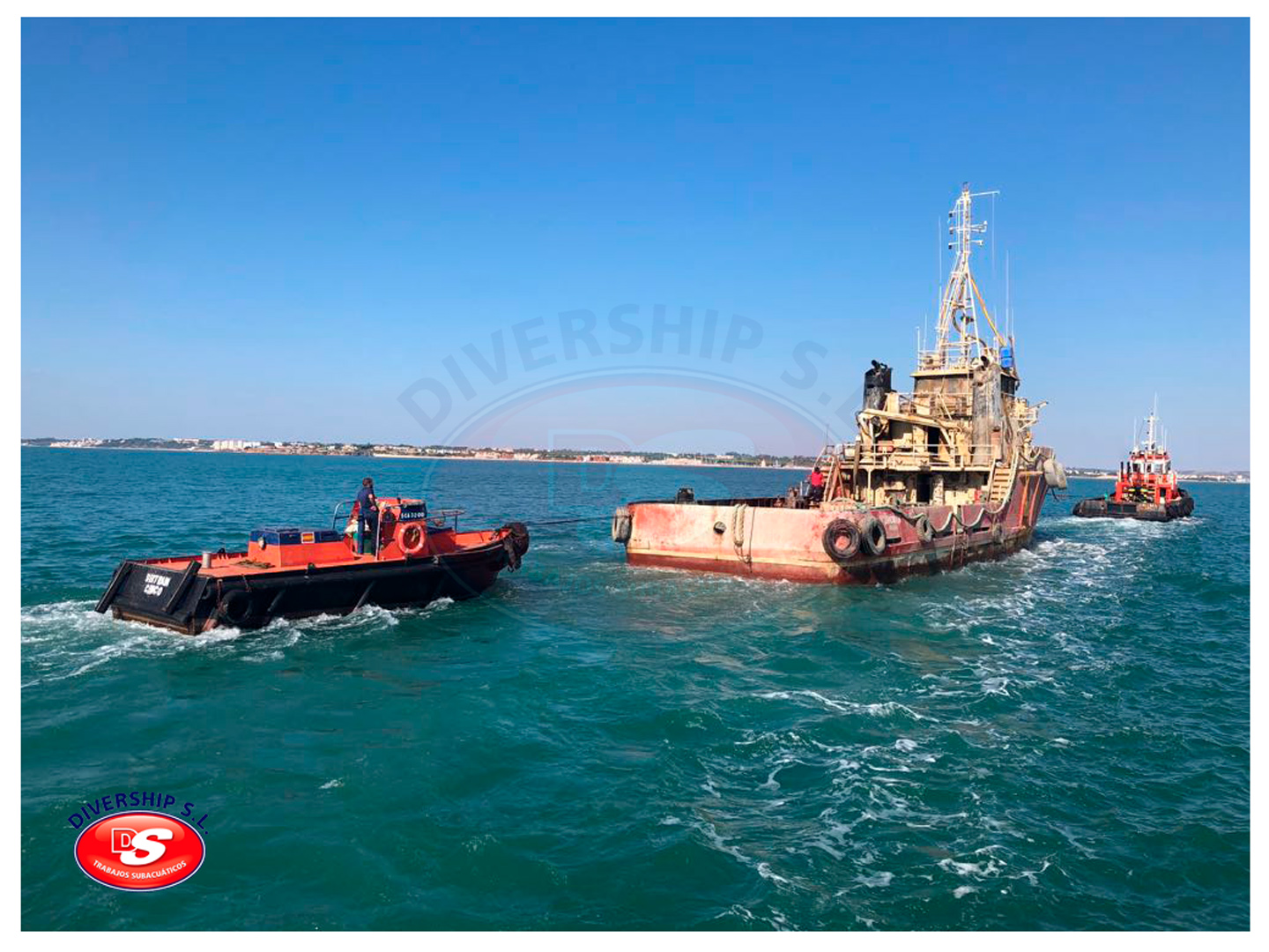 La Autoridad Portuaria Bahía de Cádiz encargó a DIVERSHIP SL Trabajos Subacuáticos el reflotamiento del del buque, y su posterior traslado a El Puerto de Santa María.
